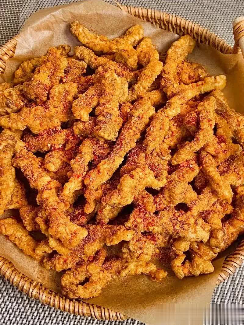 4,锅里加植物油烧热,抓入肉条下锅炸,定型后捞出,油温再次升上来的时候,复炸至表面金黄变酥,捞出控油即可上桌